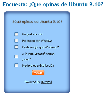 Micropoll te ayuda a crear una encuesta fácilmente. Escribes la pregunta, las posibles respuestas y voilá, obtienes el código HTML para integrarlo en tu web.